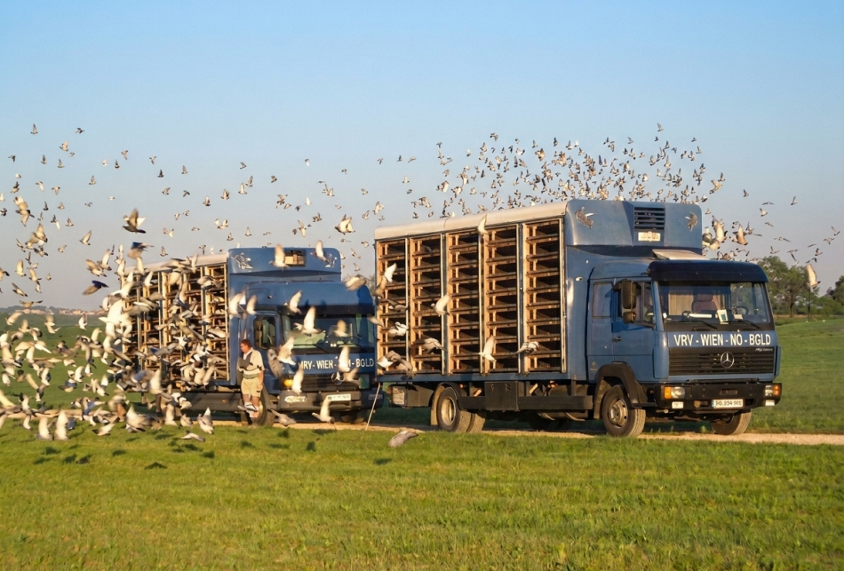 Verschiedene Futtersorten und Beiprodukte für Brieftauben.